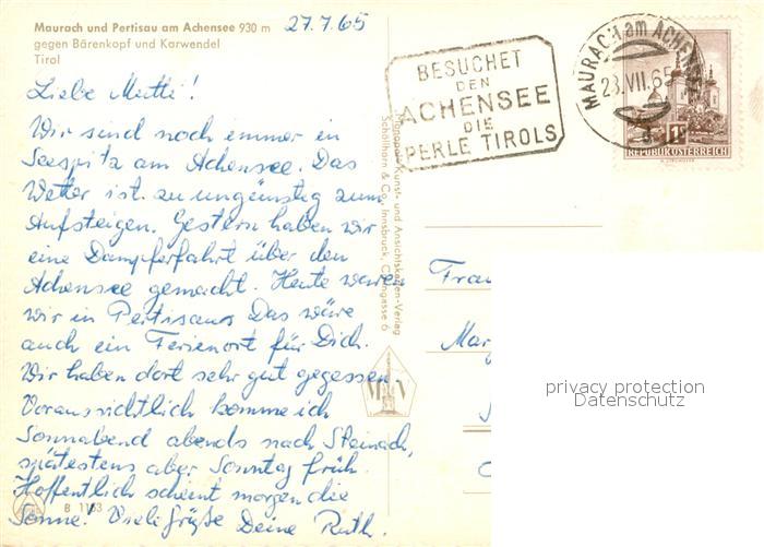 73315339 alte Postkarte Maurach Achensee Fliegeraufnahme Pertisau See postalisch gelaufen Erhaltung siehe scans [LiesaD40] KatCode: 11390335070907