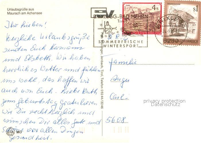 73143685 alte Postkarte Maurach Achensee Gesamtansicht mit Alpenpanorama postalisch gelaufen Erhaltung siehe scans [FriedD77] KatCode: 11390335070907