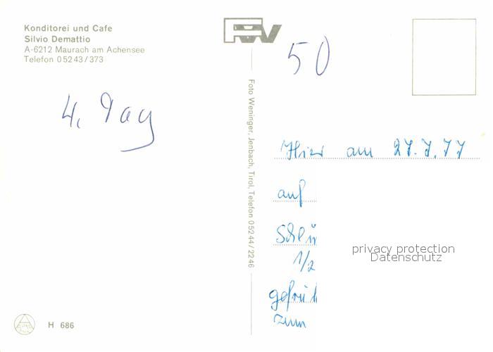 72794851 Maurach Achensee Konditorei Cafe Silvio Demattio postalisch nicht gelaufen Erhaltung siehe scans [KathaD81] KatCode: 11390335070907