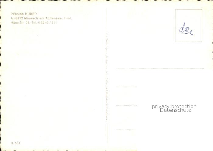 72504518 Maurach Achensee Pension Huber postalisch nicht gelaufen Erhaltung siehe scans KatCode: 11390335070907