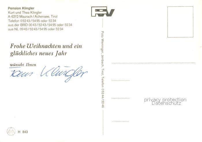 13192453 Maurach Achensee Pension Klingler postalisch nicht gelaufen Erhaltung siehe scans [PaolaD17] KatCode: 11390335070907