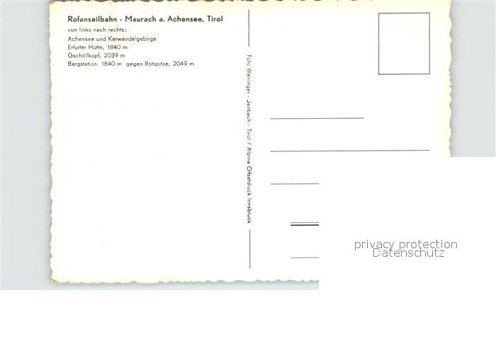 72581161 Maurach Achensee Rofanseilbahn Karwendelgebirge Erfurter Huette Bergstation postalisch nicht gelaufen Erhaltung siehe scans [FriedD77] KatCode: 11390335070907