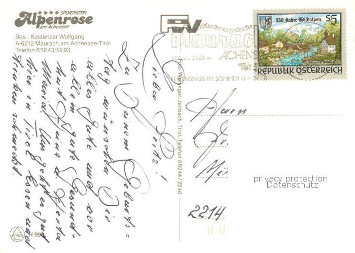73280550 alte Postkarte Maurach Achensee Sporthotel Alpenrose Gastraeume Swimmingpool postalisch gelaufen Erhaltung siehe scans [WerneD78] KatCode: 11390335070907