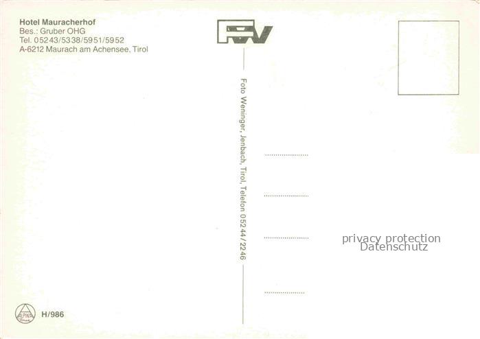 74152561 Maurach Achensee TiroL AT Hotel Pension Mauracherhof Panorama Gastraeume Bar postalisch nicht gelaufen Erhaltung siehe scans [WerneD78] KatCode: 11390335070907