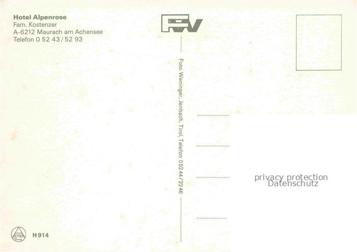 74152560 Maurach Achensee TiroL AT Sporthotel Alpenrose postalisch nicht gelaufen Erhaltung siehe scans [WerneD78] KatCode: 11390335070907