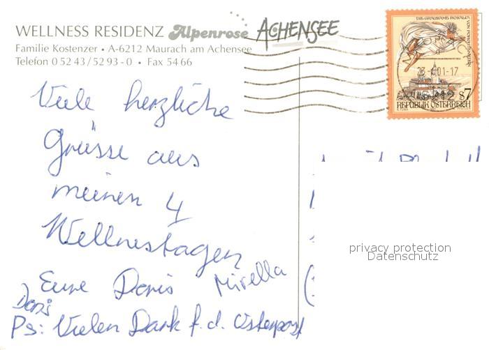 72947228 alte Postkarte Maurach Achensee Wellness Residenz Alpenrose postalisch gelaufen Erhaltung siehe scans [LiesaD40] KatCode: 11390335070907