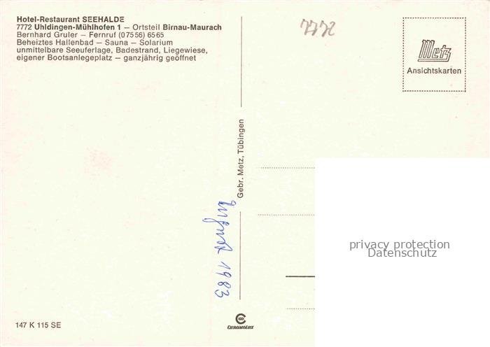 74104070 Maurach Birnau Bodenseekreis BW Hotel Seehalde Terrasse Hallenbad Segelboot postalisch nicht gelaufen Erhaltung siehe scans [FriedD77] KatCode: 11110008435066
