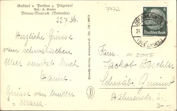 30727801 alte Postkarte Maurach Birnau postalisch gelaufen KatCode: 11110008435066