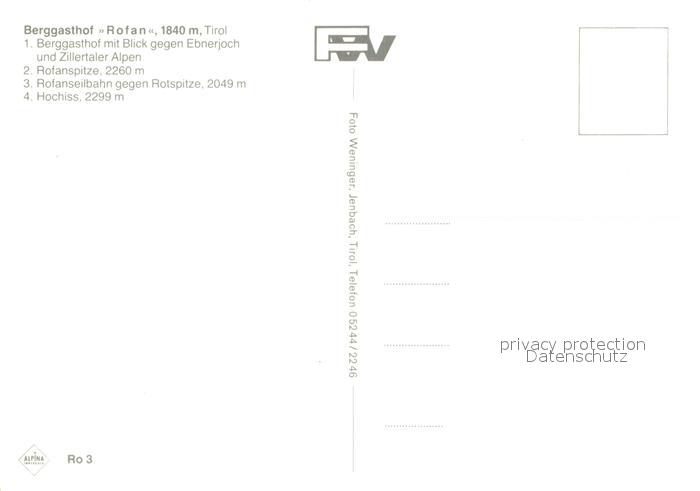 73340275 Maurach Tirol Berggasthof Rofan Fernsicht Zillertaler Alpen Rofanspitze Seilbahn Gebirgspanorama postalisch nicht gelaufen Erhaltung siehe scans [FriedD77] KatCode: 11390335070907