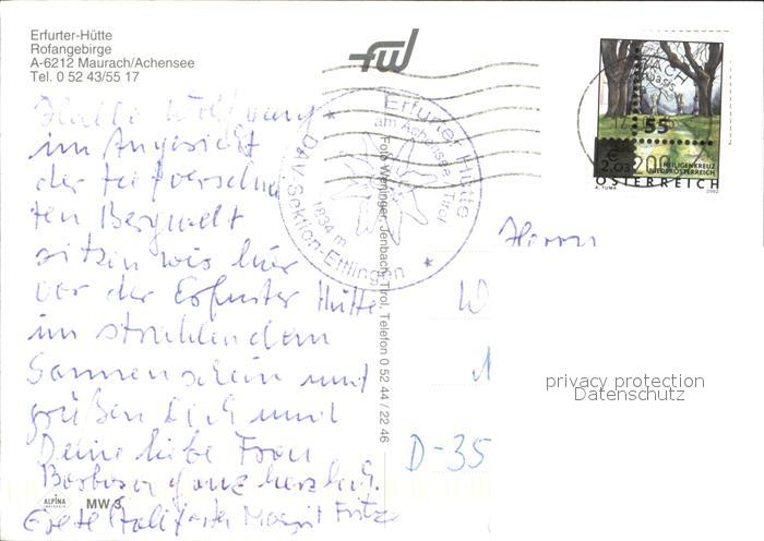72469870 alte Postkarte Maurach Tirol Erfurter Huette Rofangebirge postalisch gelaufen Erhaltung siehe scans KatCode: 11390335070907