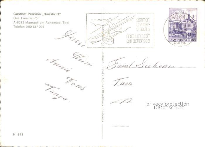 72581901 alte Postkarte Maurach Tirol Gasthaus Pension Hanslwirt postalisch gelaufen Erhaltung siehe scans [LiesaD40] KatCode: 11390335070907