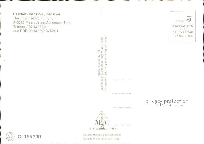 72072115 Maurach Tirol Gasthof Pension Hanslwirt postalisch nicht gelaufen KatCode: 11390335070907