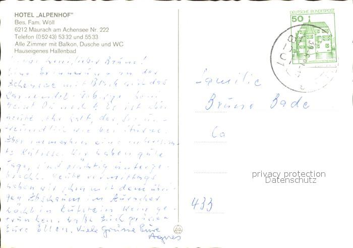 71866327 alte Postkarte Maurach Tirol Hotel Alpenhof postalisch gelaufen Erhaltung siehe scans KatCode: 11390335070907