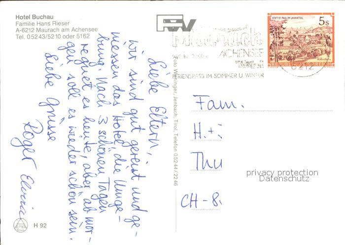 72219311 alte Postkarte Maurach Tirol Hotel Buchau am Achensee Swimmingpool postalisch gelaufen Erhaltung siehe scans KatCode: 11390335070907