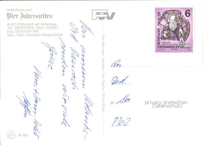 72170503 alte Postkarte Maurach Tirol Hotel Restaurant Vier Jahreszeiten postalisch gelaufen Erhaltung siehe scans KatCode: 11390335070907