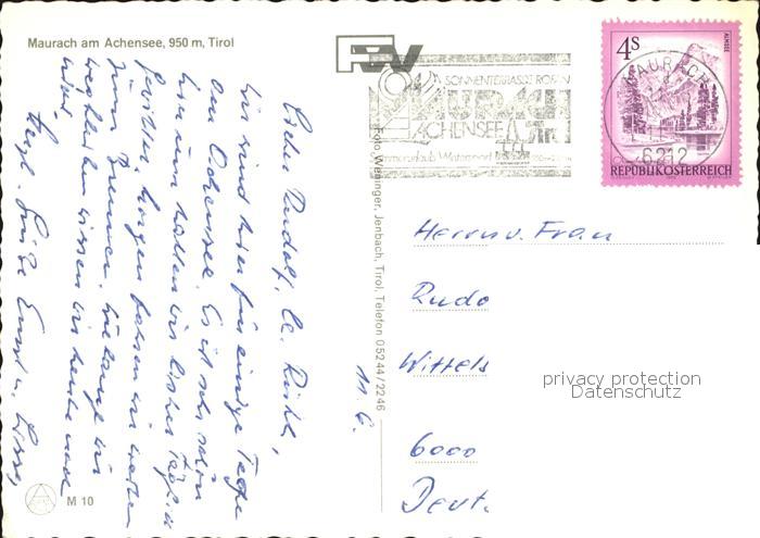12469702 alte Postkarte Maurach Tirol mit Pertisau Fliegeraufnahme postalisch gelaufen Erhaltung siehe scans KatCode: 11390335070907