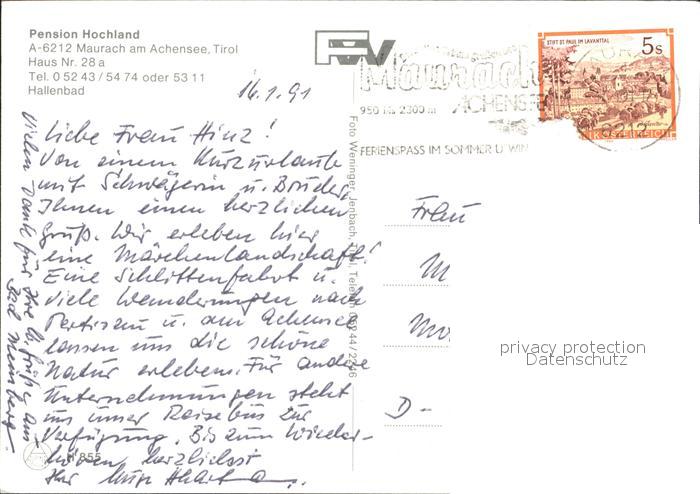 72393564 alte Postkarte Maurach Tirol Pension Hochland postalisch gelaufen Erhaltung siehe scans KatCode: 11390335070907