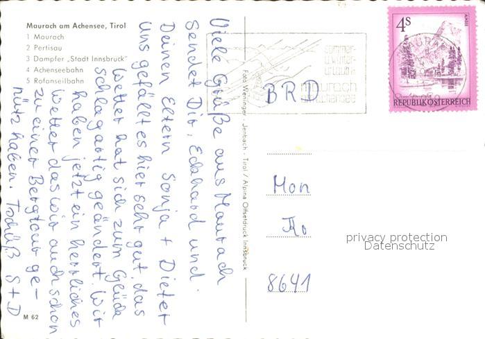 72016894 alte Postkarte Maurach Tirol Pertisau Achenseebahn Rofanseilbahn postalisch gelaufen Erhaltung siehe scans KatCode: 11390335070907