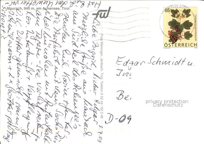 72567056 alte Postkarte Maurach Tirol Seepartie postalisch gelaufen Erhaltung siehe scans [LiesaD40] KatCode: 11390335070907