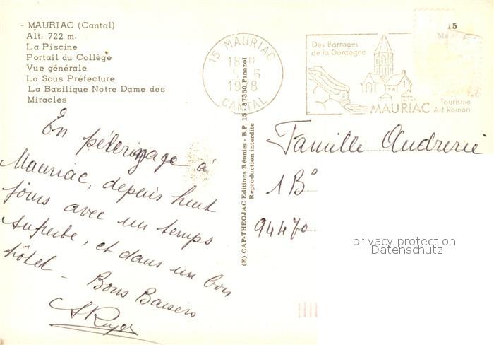 13582053 Mauriac Cantal Piscine Portail du College Sous Prefecture Basilique Notre Dame des Miracles postalisch gelaufen Erhaltung siehe scans [FriedD77] carte postale Frie Katcode 11170015215120