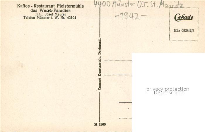 73700844 Mauritz Kaffee Restaurant Pleistermuehle an der Werse postalisch nicht gelaufen Erhaltung siehe scans [FriedD77] KatCode: 11110005515000