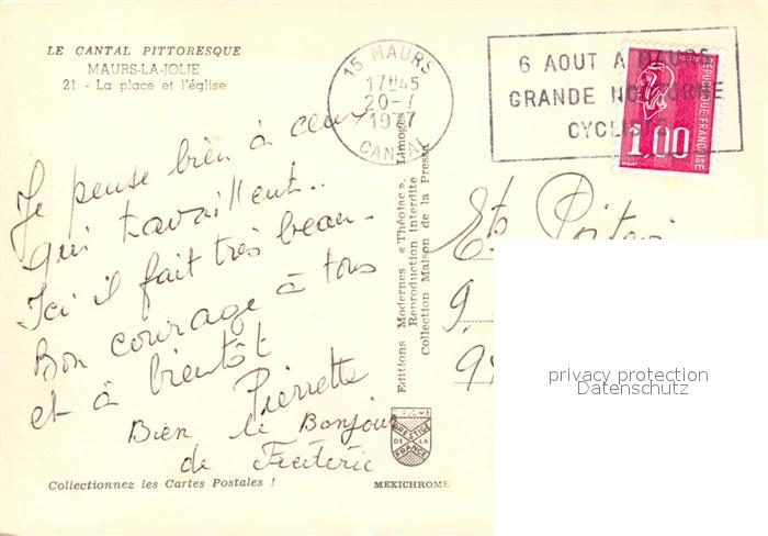13579047 carte postale Maurs Place Fontaine Eglise postalisch gelaufen Erhaltung siehe scans [FriedD77] KatCode: 11170015115122