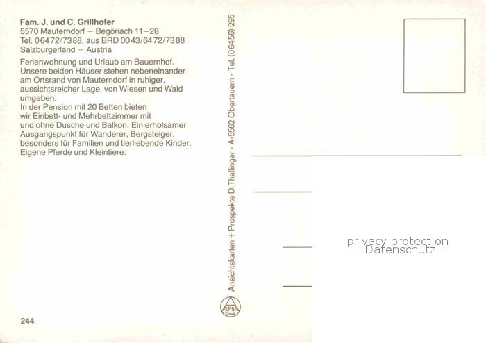 72772187 Mauterndorf Pension Grillhofer postalisch nicht gelaufen Erhaltung siehe scans [AndreD76] KatCode: 11390321050504
