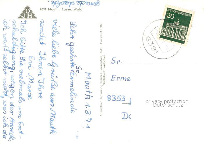 73161760 alte Postkarte Mauth Niederbayern Jugendherberge postalisch gelaufen Erhaltung siehe scans [WerneD78] KatCode: 11110009272134