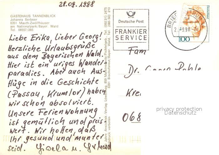 73672109 alte Postkarte Mauth Niederbayern Nationalpark Bayerischer Wald Gipfelkreuz Panorama Bach Luchs postalisch gelaufen Erhaltung siehe scans [WerneD78] KatCode: 11110009272134