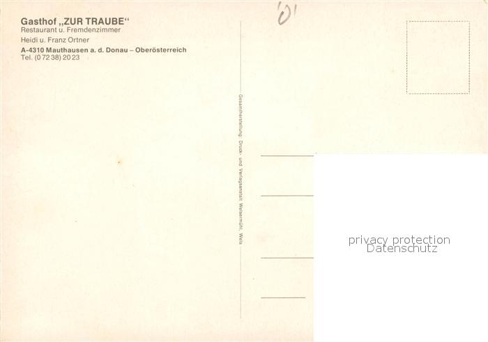 13218761 Mauthausen Oberoesterreich Gasthaus Zur Traube postalisch nicht gelaufen Erhaltung siehe scans [LiesaD40] KatCode: 11390313041111