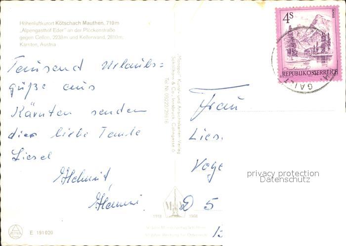 72479838 alte Postkarte Mauthen Alpengasthof Eder mit Cellon und Kellerwand postalisch gelaufen Erhaltung siehe scans KatCode: 11390