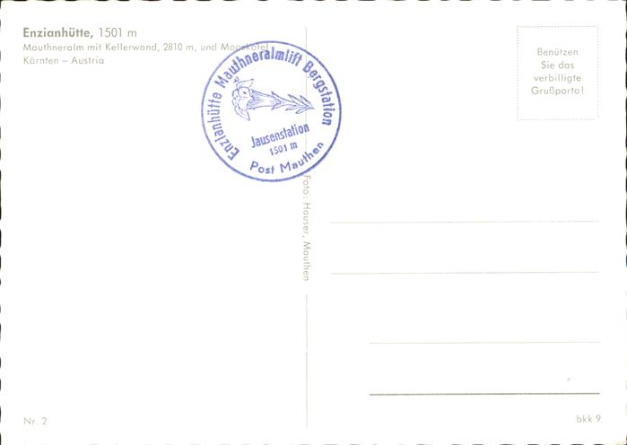 71431693 Mauthen Enzianhuette Mauthneralm Jausenstation mit Kellerwand Mooskofel postalisch nicht gelaufen Erhaltung siehe scans KatCode: 11390