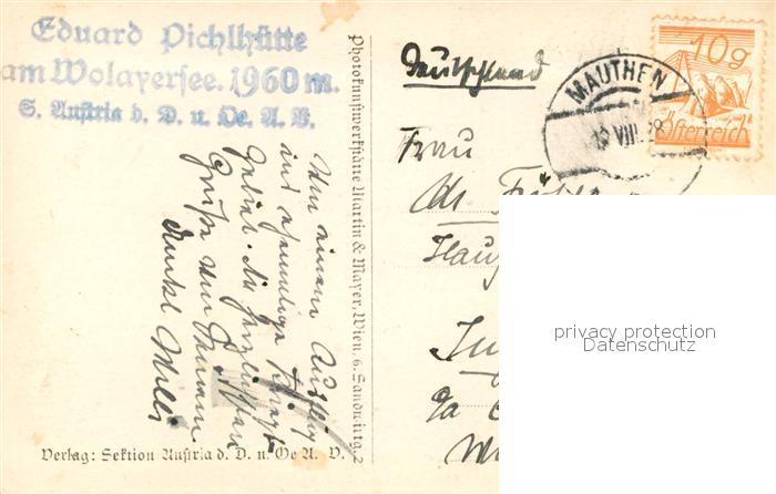 42998872 alte Postkarte Mauthen Hohe Warte Kellerwand postalisch gelaufen Erhaltung siehe scans [AndreD76] KatCode: 11390