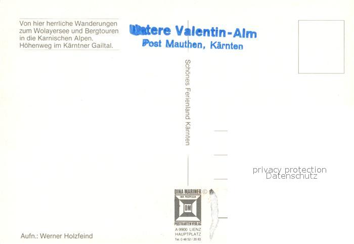 73230923 Mauthen Untere Valentinalm mit Kellerwand Karnische Alpen postalisch nicht gelaufen Erhaltung siehe scans [FriedD77] KatCode: 11390