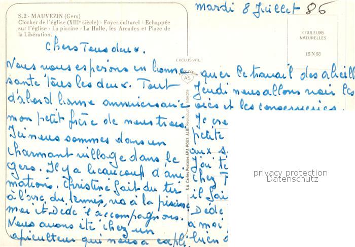 13521839 Mauvezin Gers Clocher de eglise Place de la Liberation postalisch nicht gelaufen Erhaltung siehe scans [KathaD81] KatCode: 11170032232249