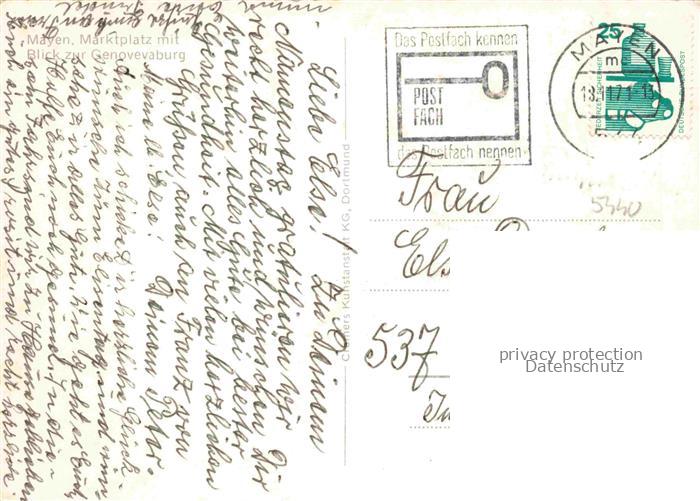 74035907 alte Postkarte Mayen Eifel Blick zur Genovevaburg postalisch gelaufen Erhaltung siehe scans [WerneD78] KatCode: 11110007137068