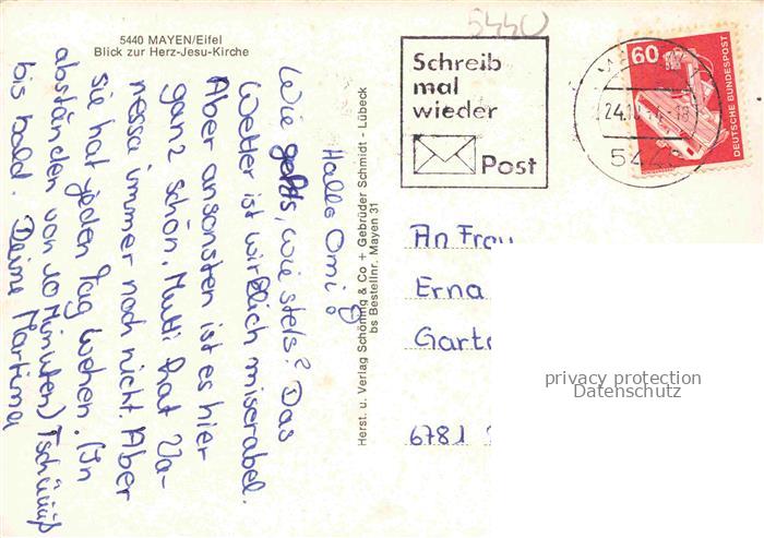 74050354 alte Postkarte Mayen Eifel Herz Jesu Kirche Panorama postalisch gelaufen Erhaltung siehe scans [WerneD78] KatCode: 11110007137068