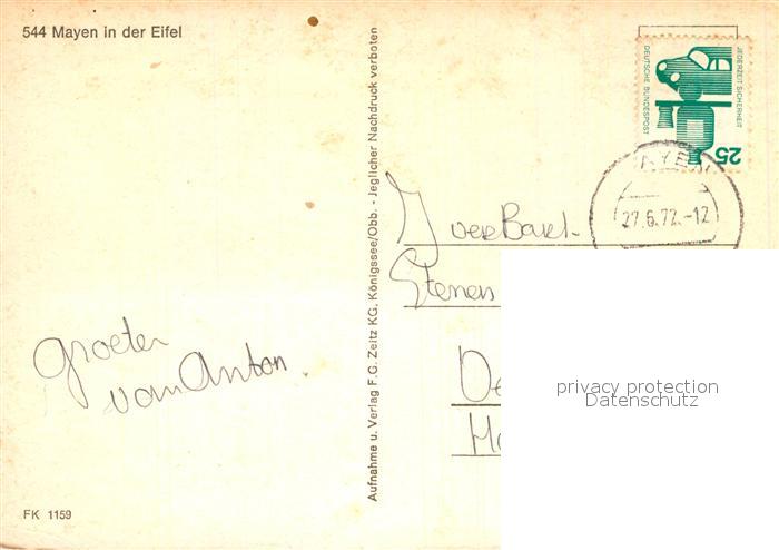 72929505 alte Postkarte Mayen Fliegeraufnahme postalisch gelaufen Erhaltung siehe scans [LiesaD40] KatCode: 11110007137068
