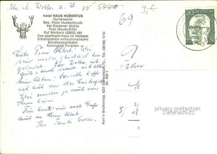 72009771 alte Postkarte Mayen Hotel Haus Hubertus postalisch gelaufen Erhaltung siehe scans KatCode: 11110007137068