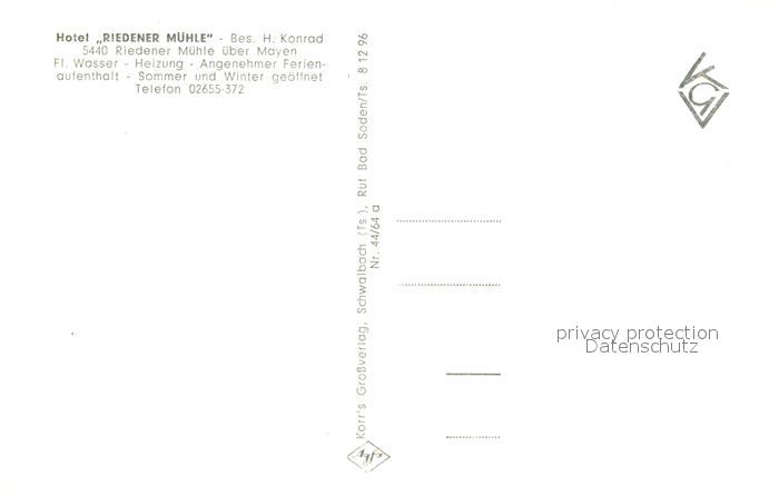 73640999 Mayen Hotel Riedener Muehle Gastraeume Schwanenteich Panorama postalisch nicht gelaufen Erhaltung siehe scans [WerneD78] KatCode: 11110007137068