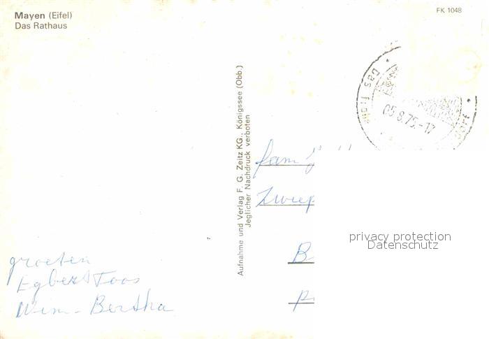 72771629 alte Postkarte Mayen Rathaus postalisch gelaufen Erhaltung siehe scans [WerneD78] KatCode: 11110007137068