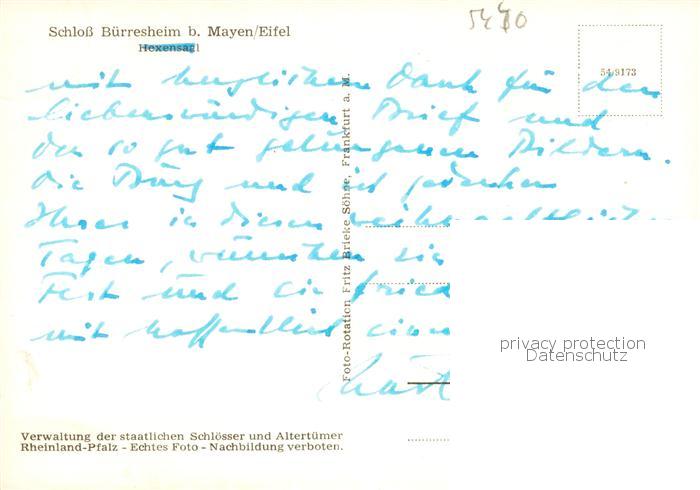 73836406 Mayen Schloss Buerresheim Hexensaal postalisch nicht gelaufen Erhaltung siehe scans [FriedD77] KatCode: 11110007137068