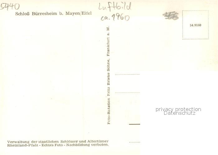 73699224 Mayen Schloss Buerresheim in der Eifel postalisch nicht gelaufen Fliegeraufnahme Erhaltung siehe scans [FriedD77] KatCode: 11110007137068
