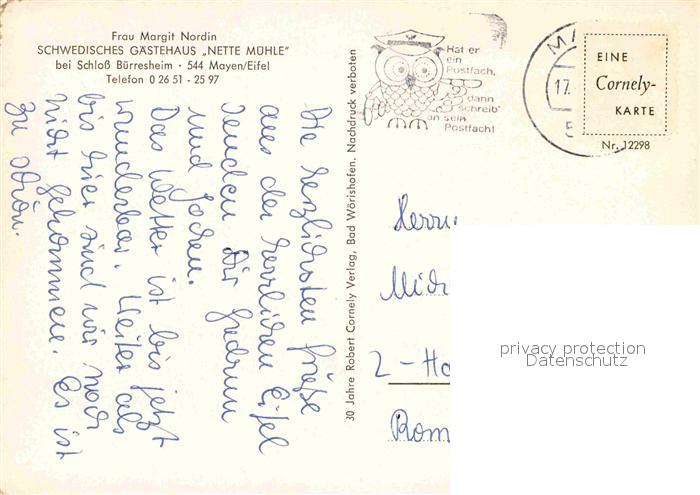 72905633 alte Postkarte Mayen Schwedisches Gaestehaus Nette Muehle Teich postalisch gelaufen Erhaltung siehe scans [FriedD77] KatCode: 11110007137068