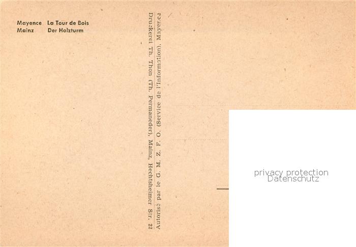 73211204 Mayence Tour de Bois Holzturm Zeichnung Kuenstlerkarte postalisch nicht gelaufen Erhaltung siehe scans [FriedD77] KatCode: 11110007315000