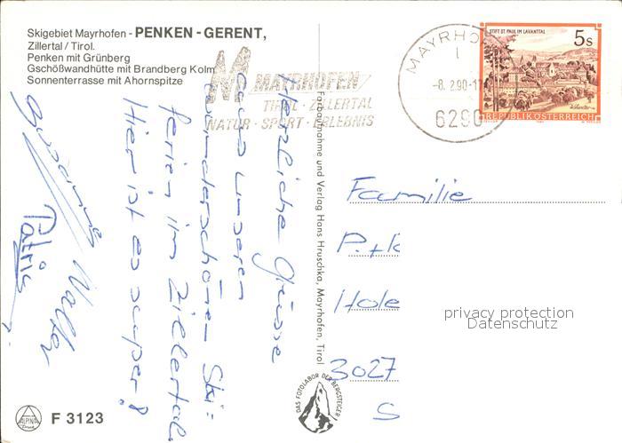72531406 alte Postkarte Mayerhof Gschoesswandhuette Penken Gruenberg Sonnenterrasse mit Ahornspitze postalisch gelaufen Erhaltung siehe scans [AndreD76 kt113box] KatCode: 11110009183129