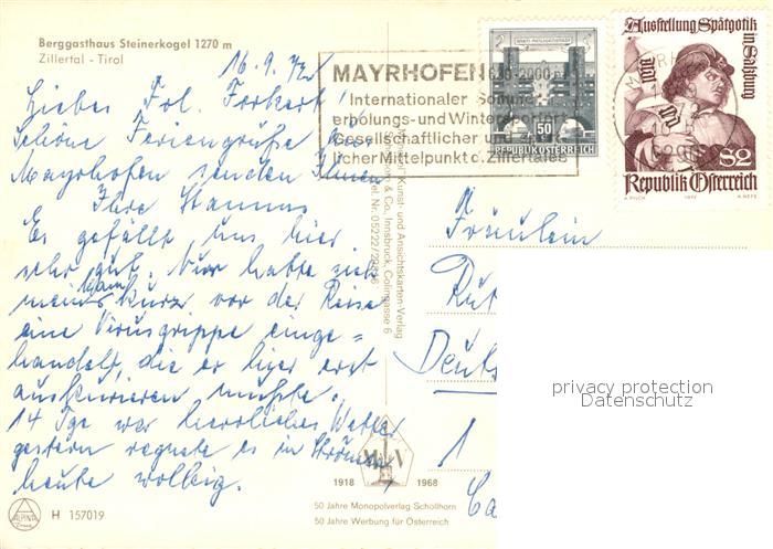 72984627 alte Postkarte Mayerhofen Berggasthaus Steinerkogel postalisch gelaufen Erhaltung siehe scans [LiesaD40] KatCode: 11110009189152