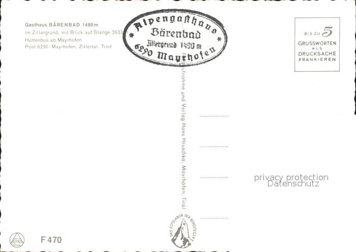 72598344 Mayerhofen Gasthaus Baerenbad im Zillertal postalisch nicht gelaufen Erhaltung siehe scans [LiesaD40] KatCode: 11110009189152