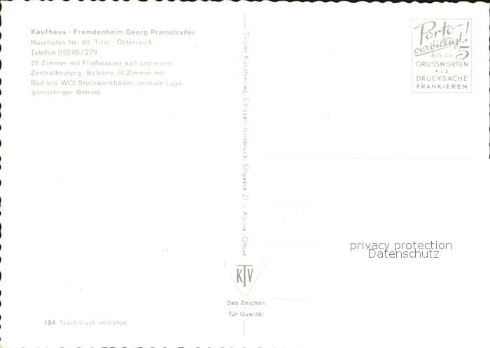 72443751 Mayerhofen Kaufhaus Fremdenheim Georg Pramstaller postalisch nicht gelaufen Erhaltung siehe scans KatCode: 11110009189152
