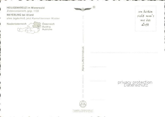 72513443 Mayerling Baden Fliegeraufnahme Heiligenkreuz postalisch nicht gelaufen Erhaltung siehe scans KatCode: 11390127030604